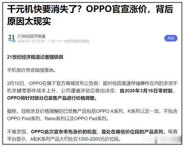 最近手机市集出了个大事,OPPO一霎晓示对部分机型加价,触及A系列、K系列和一加,但高端的Find和Reno系列暂时没动。而小米的REDMI Turbo5的内存补贴完了后径直涨了100块,vivo更狠,全系居品计较上调10%到15%。业内东谈主士都说,这是近五年来手机行业领域最大、涨得最狠的一次价钱转机。