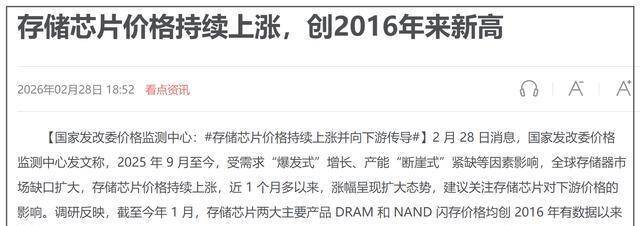 不知谈大家发现莫得,加价的围聚在千元机这块,原因很径直,存储芯片的本钱失控了。把柄国度数据,到2026年1月,全球DRAM(内存)和NAND(闪存)价钱都创下了2016年以来的最高记录。主流DDR4 8Gb颗粒从旧年低点的3.2好意思元飙到15好意思元,涨了快要四倍。