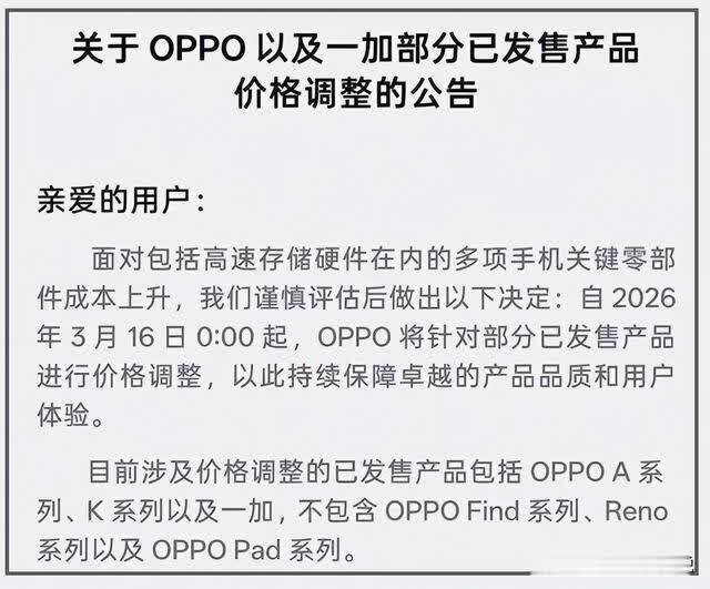 OPPO晓示加价开yun体育网,中国手机开动顶不住了,再次解说国产才是保护神。