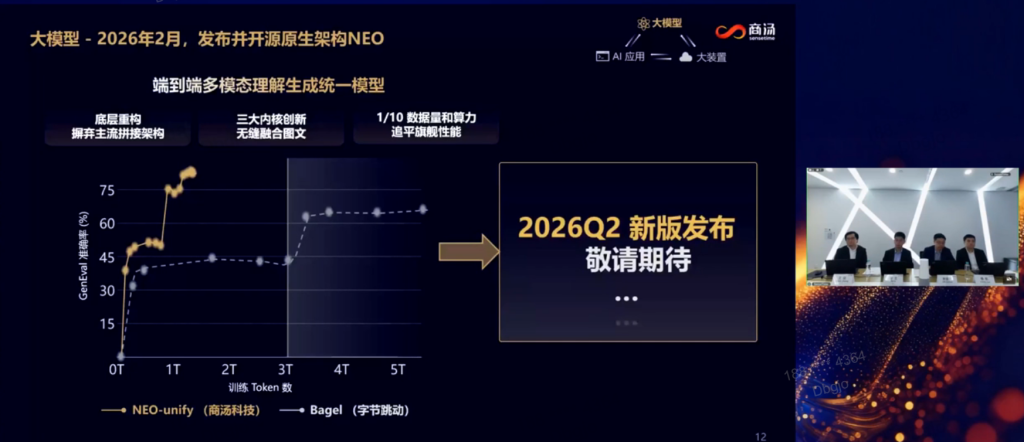3月24日晚间,在东说念主工智能公司商汤集团股份有限公司(商汤-W,0020.HK)功绩会上,商汤科技董事长兼CEO徐立示意:“咱们肯定言语与视觉的深度会通是突破智能上限的高效旅途。咱们基于NEO原生架构,高效实现意会与生成斡旋,探寻多模态的新‘轨范定律’。这一系列时期突破和智能体AI的深度诱骗将开放新的应用可能性,赋能全新垂直场景。”